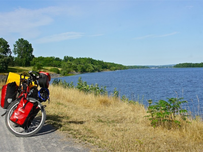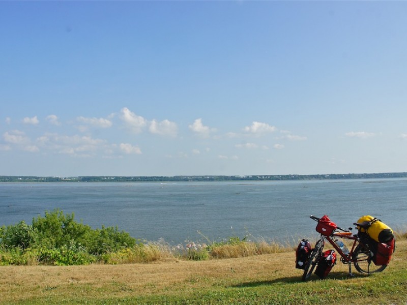 Montreal konnte ich auf einem Fahrradweg verlassen, der mal gut/mal schlecht ausgezeichnet mich bis Quebec-City (Hauptstadt der Provinz Quebec) leitete. Meist auf der wenig befahrener Straße mit breiten Seitenstreifen. Ein parallel verlaufender Expresshighway nimmt den Durchgangsverkehr auf. Der mächtige Sankt Lawrence Strom wird mich in den nächsten Tagen begleiten und führte mich ich durch eine weite fruchtbare Ebenen. Mais und Sojabohnen dominieren, wohl alle genmanipuliert. In Kanada scheint man stolz auf diese Technik zu sein, denn Schilder weisen am Feldrand auf die entsprechenden Sorten hin.