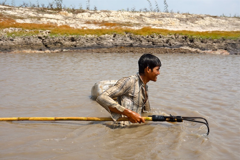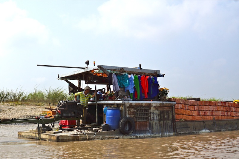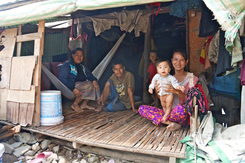Entlang des Tonle-Flusses verlassen wir in der Frühe Phnom Penh – auf der Nationalstraße mit viel Verkehr und Baustellen. Am Straßenrand haufenweise Plastik und Säckeweise auf kambodschanische Art entsorgter anderer Müll. Der Verschmutzungsgrad scheint noch höher zu sein als in Vietnam.
