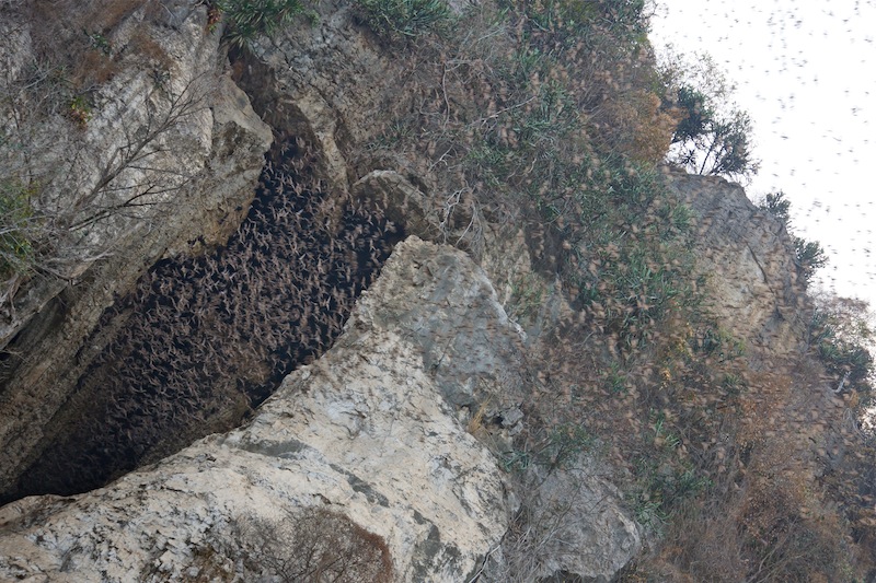 Dieser Ort ist wiederum ein Touristenzentrum, eine Durchgangsstation für Landreisende von und zu den Angkor Tempeln. Die Unterkunft ist gut, das Essen ebenfalls, wir bleiben drei Nächte. Besuchen nicht einmal die Tempel im Umland, da wir demnächst die Höhepunkte der Tempelanlagen erleben werden. Ein abendlicher Ausflug zu den Bat-Höhlen ist beeindruckend. Mit einsetzender Dämmerung fliegen aus ihr ein nicht endender Strom von Fledermäusen zur nächtlichen Jagd. Am Himmel können wir ihren Zug weiter verfolgen.